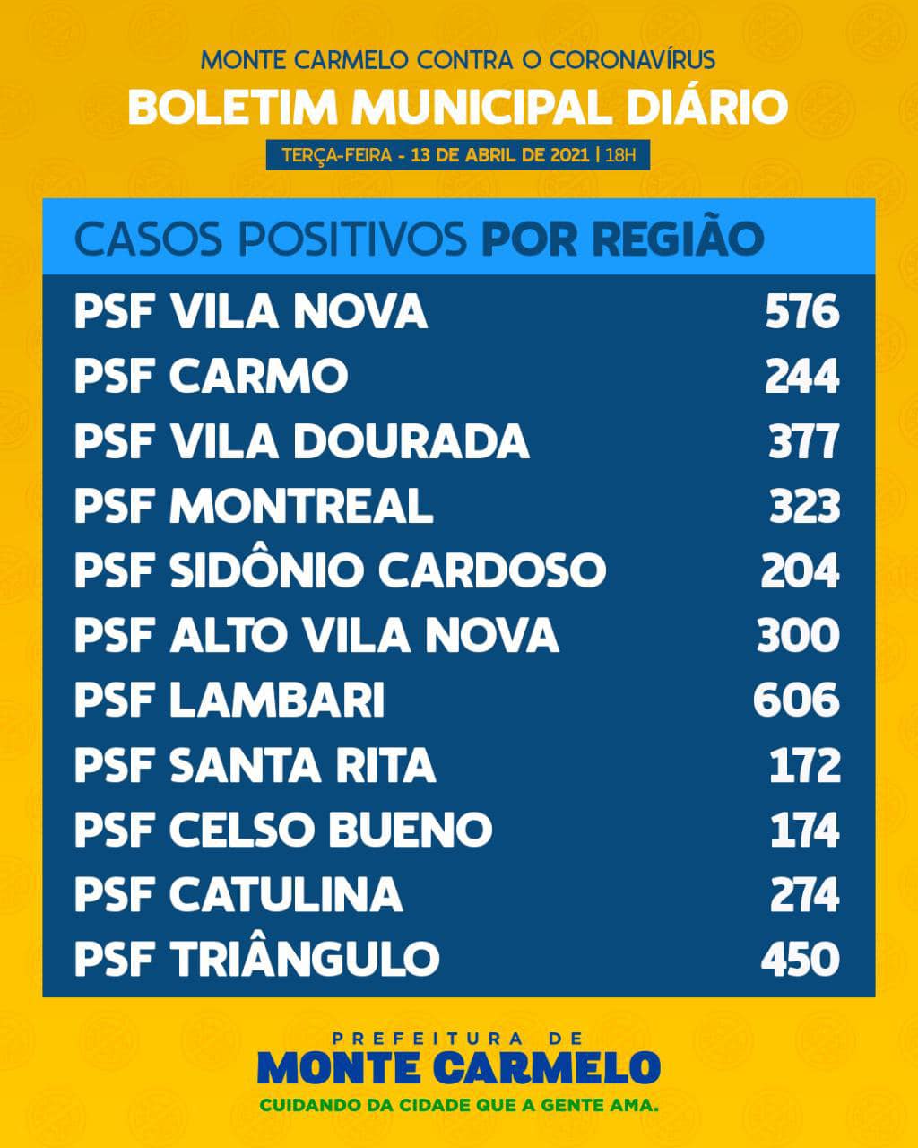 O novo boletim epidemiológico sobre a Covid-19 em Monte Carmelo mostra que foi registrado mais um óbito e 6 novos casos positivos nas últimas 24h.