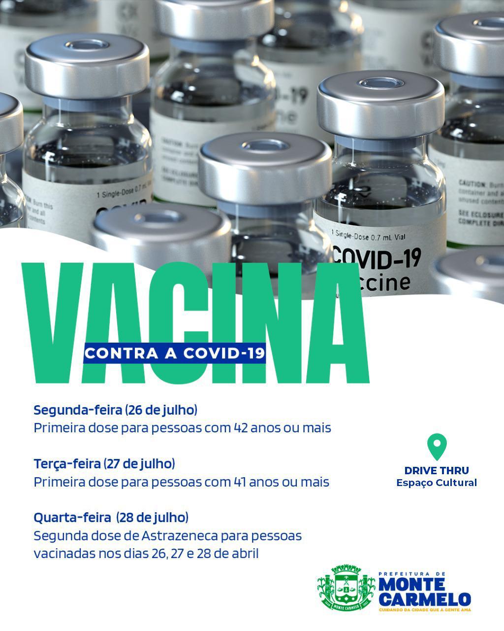 Confira a programação da vacinação contra a Covid-19 em Monte Carmelo: