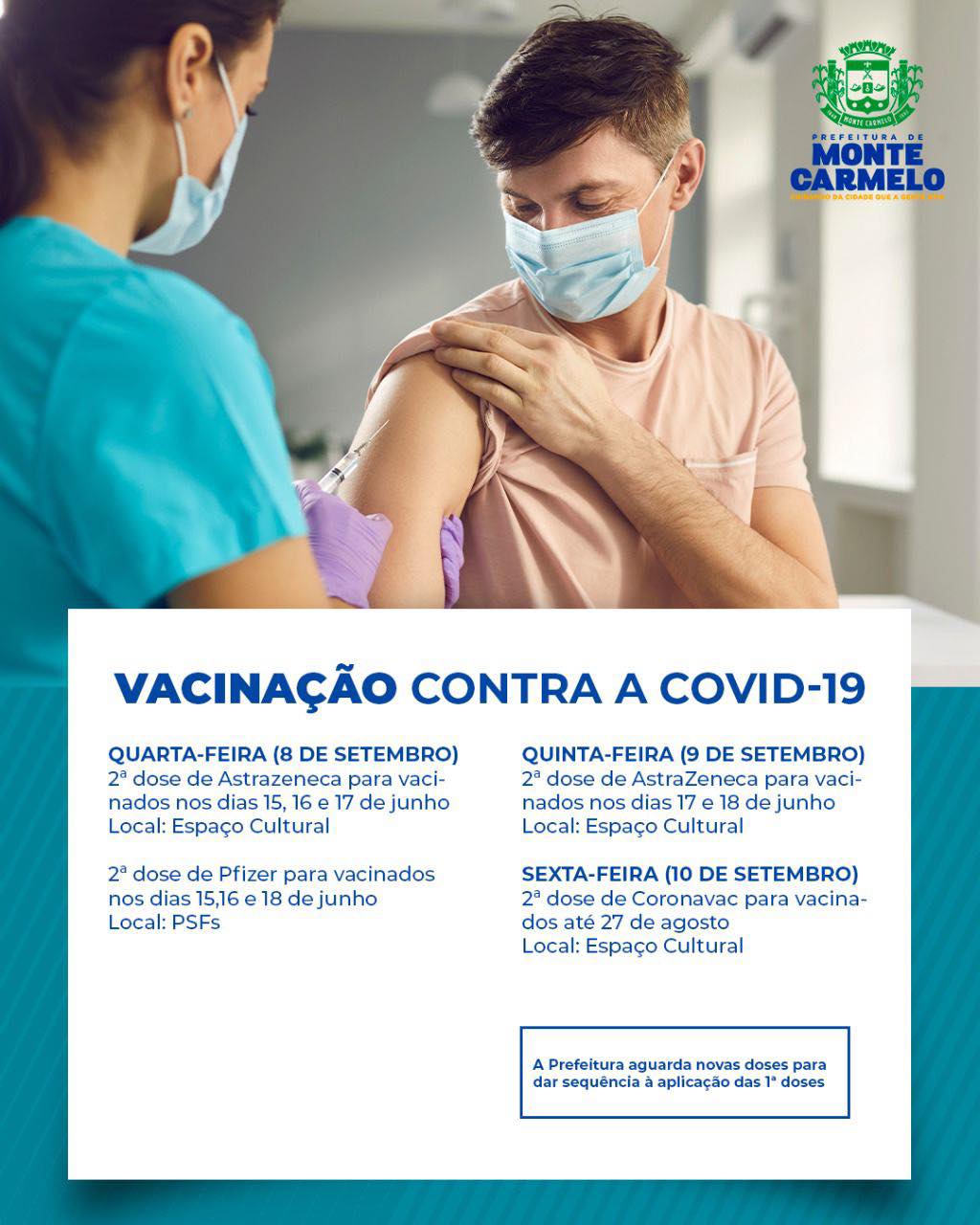 Confira o calendário de vacinação contra a Covid-19 em Monte Carmelo para essa semana.