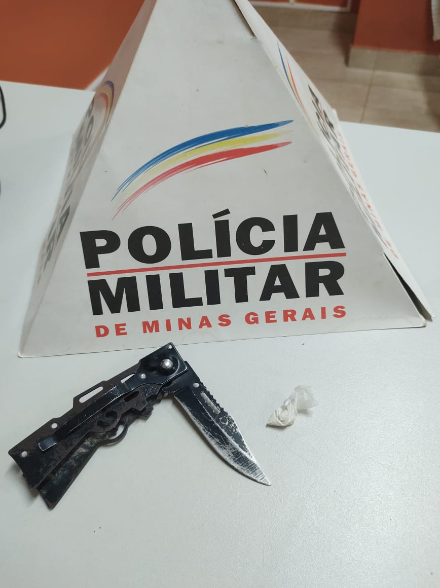 Os militares realizaram buscas, localizaram e prenderam o autor em flagrante delito e apreenderam o canivete. Em vistoria no interior do automóvel foi encontrado um papelote com aspecto semelhante à cocaína, a qual também foi apreendida.