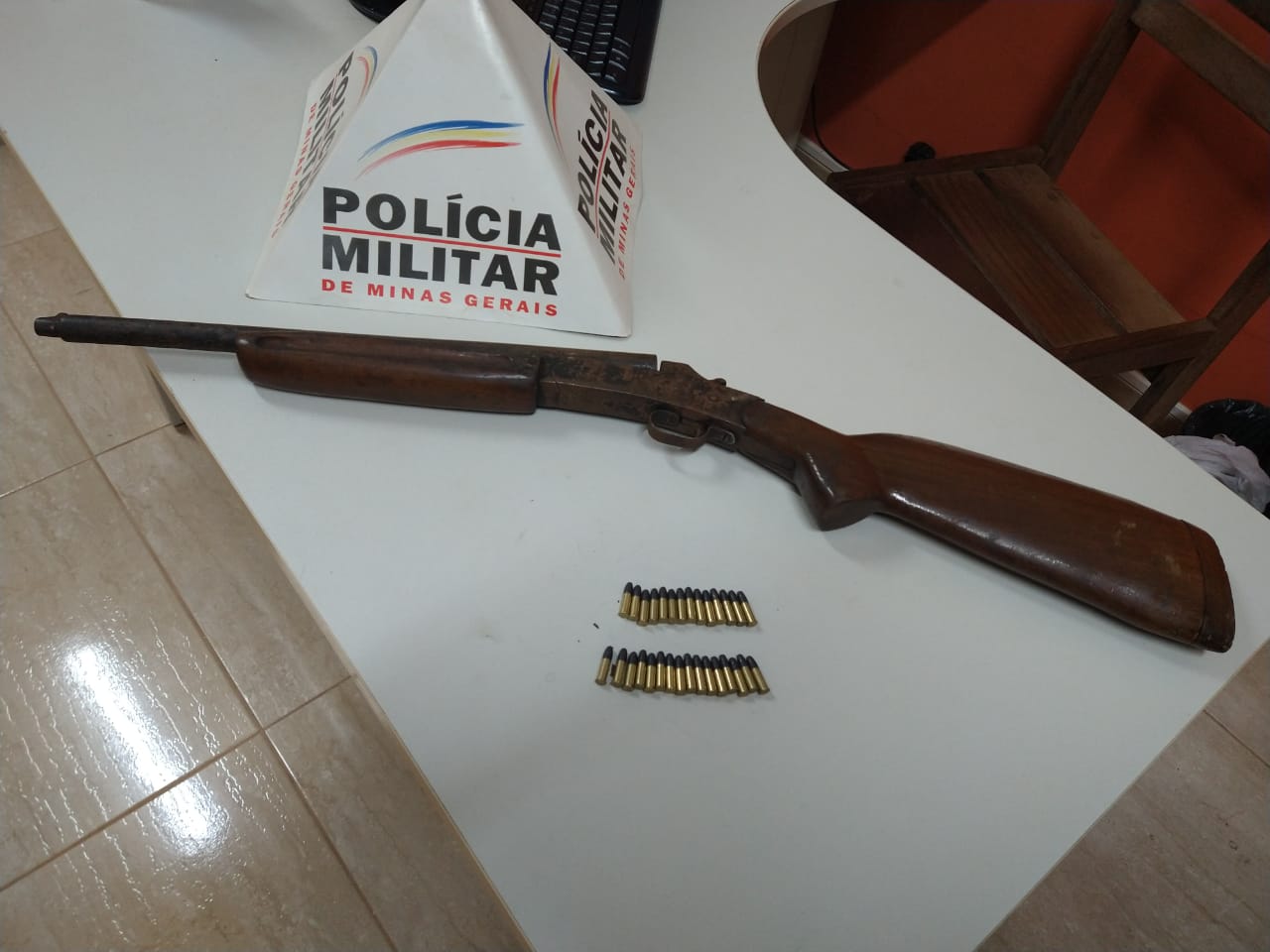 Diante dos fatos os três autores, dois homens de 37 e 24 anos, e uma mulher 34 anos, foram presos e conduzidos à Delegacia de Polícia Civil de plantão, juntamente com os materiais apreendidos: 01 espingarda cal 28 (adaptada cal 22); 30 munições (cal 22); 01 aparelho celular e 01 motocicleta apreendida.