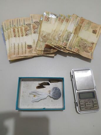 Eles foram submetidos à busca pessoal e veicular, sendo localizadas 07 peças diversas de motor de trator de esteira, avaliadas em aproximadamente R$ 6 mil; 01 celular; R$1.126,00 reais; 01 Caminhão; 03 cigarros de maconha; 01 bucha de maconha e uma balança de precisão.