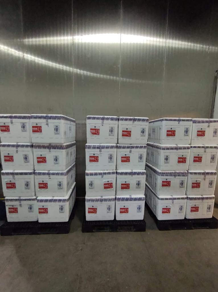 Já estão em Minas Gerais as 862.000 doses da AstraZeneca, referentes ao 26º lote de vacinas contra a covid-19. Os imunizantes chegaram na Central Estadual de Rede de Frio do Governo de Minas nesta segunda-feira (21). As doses vão reforçar a vacinação dos grupos prioritários e serão destinadas à aplicação da segunda dose dos idosos entre 60 e 64 anos e das Forças de Segurança e Salvamento. Caso algum município tenha completado o esquema vacinal de todas as pessoas de um grupo prioritário, e tiver doses disponíveis, poderá avançar na imunização de outros grupos prioritários elencados pelo Programa Nacional de Imunizações (PNI), do Ministério da Saúde. Os imunizantes entregues à Rede de Frio estadual, em Belo Horizonte, serão, agora, distribuídos para as regionais de saúde. A logística será divulgada em breve pela Secretaria de Estado de Saúde (SES-MG).