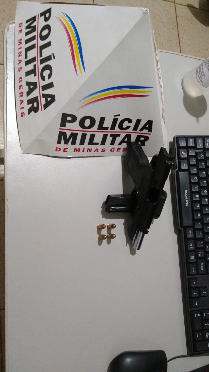 Em Monte Carmelo nessa segunda-feira (7) por volta das 20h a equipe policial avistou o veículo VW/Gol de cor branca descendo pela Rua Rio Araguaia, quando foi iniciado o acompanhamento. Foi dada ordem de parada e procedida a abordagem. Os Polícias Militares localizaram embaixo do banco do veículo 01 arma de fogo cal. 380 com 4 munições intactas. Os autores foram conduzidos a Delegacia de plantão.