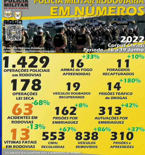 21 junCorpus Christi : Policia Militar rodoviária divulga balanço das operações das estradas