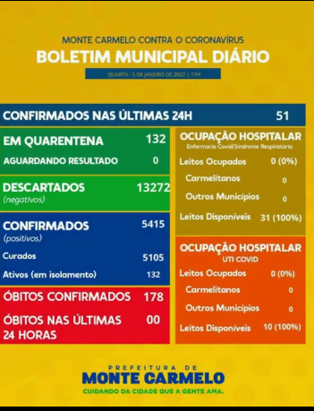 06 janMonte Carmelo registra 51 novos casos positivos para Covid-19 nas últimas 24h.