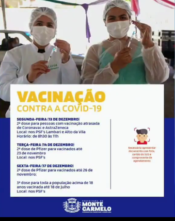 13 dezSecretaria de Saúde divulga novo calendário de vacinação contra a Covid-19 em Monte Carmelo