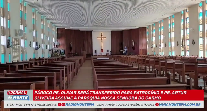 Pároco Pe. Olivar Constantino Peres será transferido para Paróquia São Geraldo em Patrocínio/MG. Pe. Artur Nelson de Oliveira assumirá a Paróquia Nossa Senhora