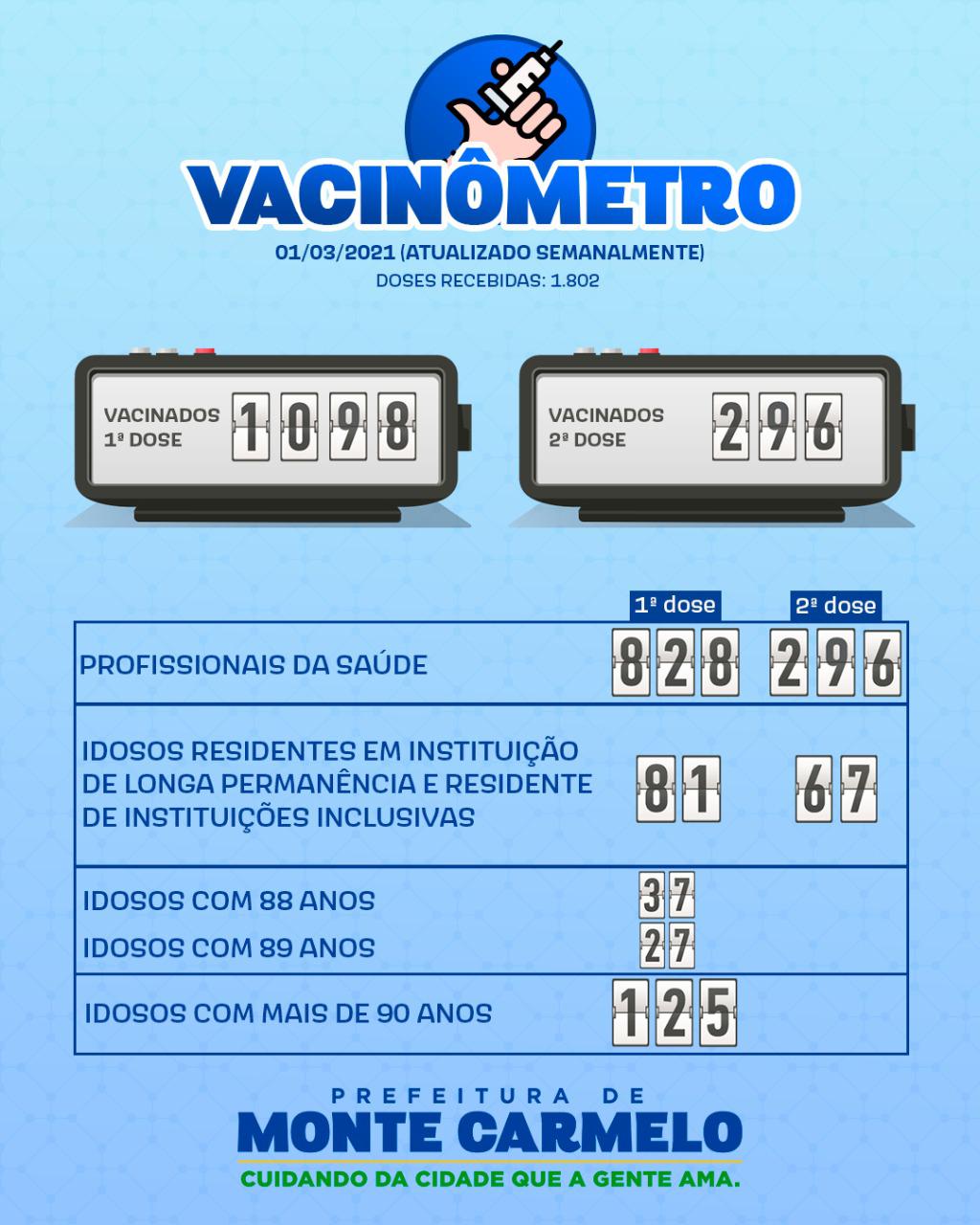A Prefeitura Municipal de Monte Carmelo passou a divulgar semanalmente os números relacionados à vacinação contra a Covid-19 no município.